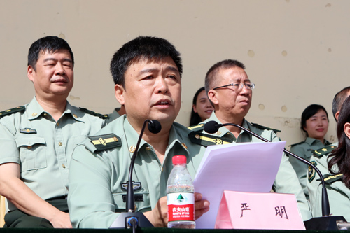 严明副校长在发言时指出,大学生军事训练是国防教育的重要组成部分,是为我国国防和军队建设培养大批高素质后备人才的有效举措,具有重大而深远的意义。大学生参加军训是我国《兵役法》赋予大学生的光荣义务;是强化全民国防观念的重要手段;是国家全面推进素质教育的重要环节;是尽快适应大学生活的有效途径。他希望,参训师生做到严格要求,服从命令;吃苦耐劳,艰苦奋斗;团结友爱,互帮互助;共同磨砺,共同成长,并预祝此次军训圆满成功。