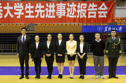 在本次报告会上发言的有:数学科学学院统计学专业的沈云云,国防教育学院朝鲜语专业的孟小晖,教育科学研究院应用心理学专业的赵丹,经济与工商管理学院会计学专业的姜俊伊,新闻传播学院广播电视编导专业的童一,国际文化教育学院数学与应用数学专业的李明星,新闻传播学院广播电视编导专业的闫方秋,以及计算机科学技术、软件学院软件工程专业的华鲸州。这八名同学分别围绕专业学习、创新创业、志愿服务等方面讲述了自己的大学生活。他们有的奉献爱心,投身于志愿服务,发挥特长,活跃于校园文化建设;他们有的一身军绿,毅然戍守国防,勤工俭学,努力回报家人社会;他们有的刻苦钻研,大胆实践创新,努力工作,奋力追寻青春梦想。