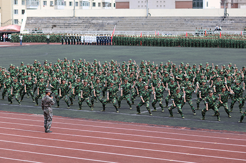 军训期间,学生完成队列队形、分列式、阅兵式、内务整理等科目的训练及考核,并进行了社会主义核心价值观教育、爱国主义教育、校史校情教育、防火安全教育等以“梦驰黑大,青春起航”为主题的系列新生入学教育,积极参与以“永远跟党走,喜迎十九大”为主题的演讲比赛、征文比赛、大合唱比赛、拔河比赛等各类文体活动,在提高军事素养和身体素质的同时,加深了对大学生活的认知,进一步增强了组织纪律观念和团队合作意识。本次军训结束后,男子捕俘拳方队、女子队列方队和国旗护卫队集训队将代表学校参加全省高校军训成果展演。(摄影:赵春争)