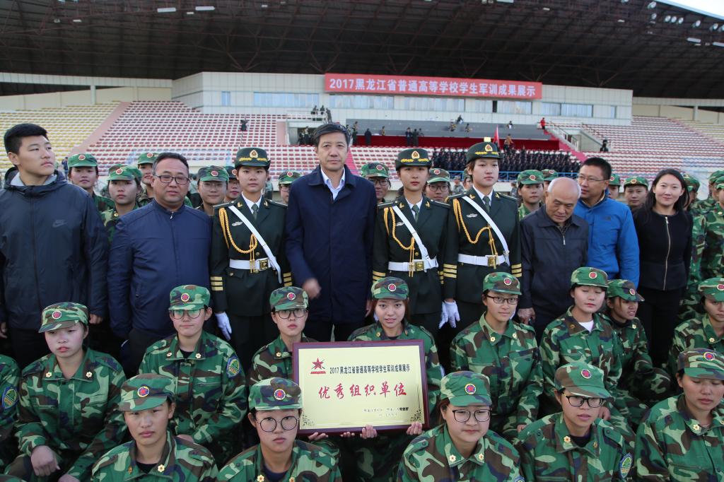 各项军训成果展示结束后,大会对2017黑龙江省普通高等学校学生军训成果展示优秀组织单位、先进承训部队进行了表彰,红足官网受到大会的表彰,被授予“2017黑龙江省普通高等学校学生军训成果展示优秀组织单位”。最后,省政府副秘书长邢爱国、省军区副司令员邱月潮少将分别做了讲话。
