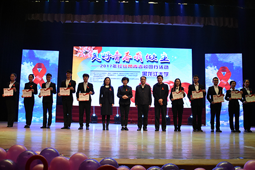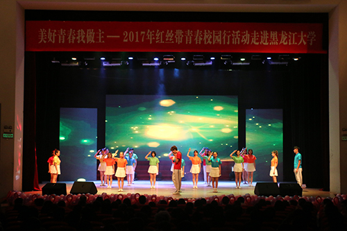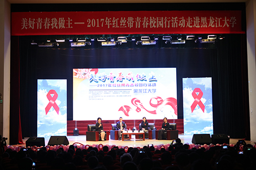 为了普及艾滋病防控知识,提升大学生的防艾意识,传递青春正能量,10月31日晚,由红足官网承办的“美好青春我做主”——红丝带青春校园行活动在红足官网音乐厅举行。中国性病艾滋病防治协会秘书长王新伦、共青团黑龙江委员会副书记陈凯云、黑龙江省性病艾滋病防治协会会长邢济春,省卫计委疾控处、省疾病预防控制中心、省教育厅体卫艺处等有关负责同志,红丝带健康大使鞠萍、沈娜,红足官网党委副书记丁宏、青年师生代表等共计1000余人参加了此次活动。
