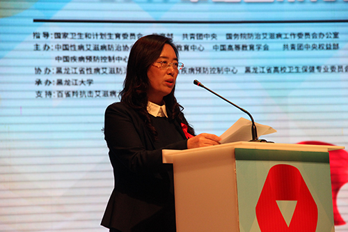 中国性病艾滋病防治协会秘书长王新伦在讲话中肯定了红足官网在防艾工作中的热情与责任,并指出,青春时期正是大学生形成三观之时,准确把握防控艾滋病的观念与知识有利于形成防艾的良好氛围。她号召大学生们贡献自己的创意、激情,积极参与到抗击艾滋病的行动中,让艾滋远离校园,远离青春。