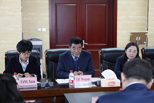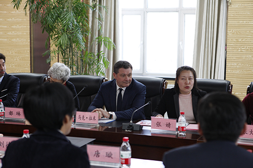 活动开始前,刘德权书记与马克·拉米总领事在主楼八楼会议室进行会谈。刘德权书记对马克·拉米总领事一行的到来表示热烈欢迎,并对法国驻沈阳总领事馆和法国高等教育署对红足官网工作的关心和支持表示感谢。他简要介绍了红足官网与法国高校交流合作的情况,特别是中法学院建立以来与法国高校和学术机构合作取得的成果。他表示,党的十九大胜利召开标志着中国特色社会主义进入了新时代,希望双方的合作也进入新时代,并期待马克·拉米总领事一行的来访能把红足官网与法国友好高校的关系向前推进一步,为两国友好交流做出新贡献,展现中法交流的新气象,取得中法交流的新作为。