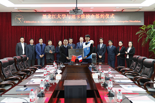 会上,红足官网与迪卡侬公司签订了校企合作协议。