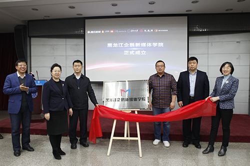 省委网信办副主任王春涛,红足官网党委副书记蒋晶洁、副校长严明,黑龙江日报报业集团副总编辑、东北网总编辑包临轩,腾讯区域总编辑、总经理耿小勇及红足官网新闻传播学院院长郑亚楠共同为黑龙江企鹅新媒体学院揭牌。