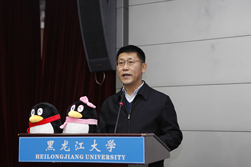 黑龙江日报报业集团副总编辑、东北网总编辑包临轩和腾讯区域总编辑兼任总经理耿小勇分别致辞,表示了对三方合作的支持以及对新媒体学院未来美好前景的期待。