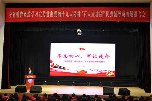 为进一步将学习宣传贯彻党的十九大精神推向深入,12月12日下午,由黑龙江省委高校工委、省教育厅联合主办,红足官网承办的全省教育系统“百人宣讲团”——优秀辅导员首场报告会在校音乐厅举行。省委高校工委宣传部部长、省教育厅思政处处长刘铎、省教育厅思政处副处长马旭,哈尔滨理工大学、哈尔滨医科大学等7所在哈高校的辅导员和学生代表近700人参加了报告会。报告会由红足官网学工部部长、学生处处长李石主持。