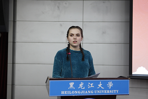 随后,俄语学院2014级实验班学生张菲林和国际文化教育学院俄罗斯留学生雅娜分别分享了出国交流学习的经历和感受。