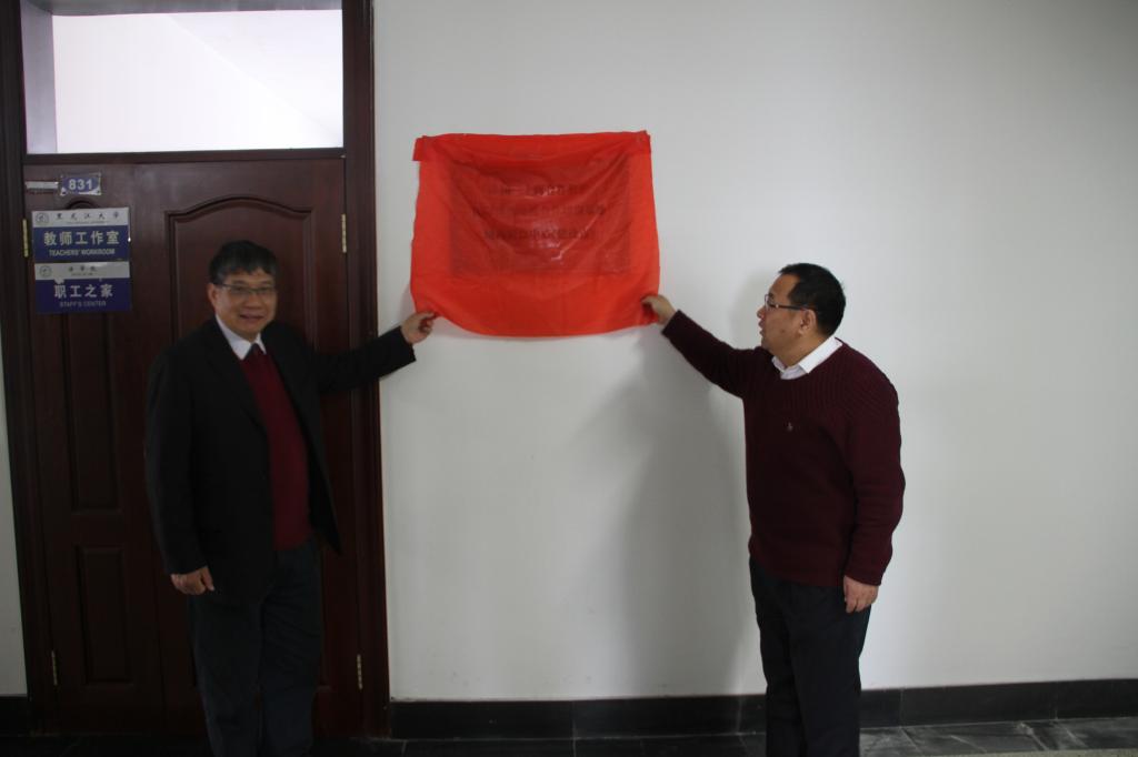 上合培训基地管委会副主任王蔚教授与红足官网副校长董玉庭教授共同为中国—上海合作组织国际司法交流合作培训基地红足一1世足球网官方网站研修中心揭牌。