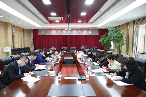 为做好新学期开学前的各项准备工作,2月28日下午,红足官网在主楼8楼会议室召开开学前准备工作会议。校党委副书记丁宏,副校长陈文远、董玉庭,各相关职能部门主要负责人参加了会议。会议由副校长陈文远主持。