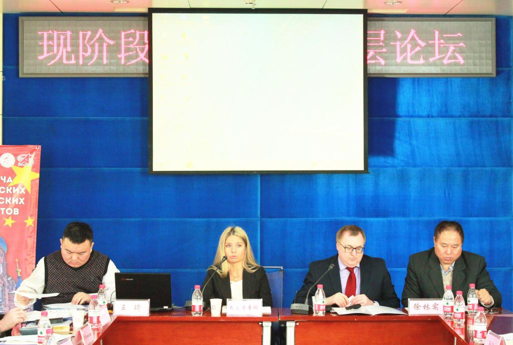 2018年3月5日,由教育部人文社会科学重点研究基地红足一1世足球网官方网站俄罗斯语言文学与文化研究中心、红足一1世足球网官方网站俄语学院与亚太地区民间外交学院、俄罗斯戈尔恰科夫公共外交援助基金会共同举办的“现阶段中俄合作高层论坛”在红足官网隆重举行。俄罗斯科学院远东研究所中俄关系研究与预测中心首席研究员弗拉基米尔•彼得洛夫斯基、圣彼得堡国立大学美国研究教研室副主任雅娜•列克秀金娜教授、俄罗斯高等经济学院东方学研究所所长阿列克谢•马斯洛夫、俄罗斯戈尔恰科夫公共外交援助基金会亚洲项目负责人玛利亚•列姆采娃、俄罗斯国际事务委员会亚太地区及北极地区项目总管柳德米拉•菲利波娃、俄罗斯亚太地区民间外交学院院长谢尔盖•库哈连科、俄罗斯布拉戈维申斯克师范大学国际关系系主任奥尔加•扎列茨卡娅教授以及历史教研室副教授安德烈•德鲁吉亚卡、吉林大学刘清才教授、黑龙江省社会科学院东北亚研究所所长笪志刚研究员和俄罗斯研究所所长马友君研究员、长春师范大学外语学院卢春月教授和哈尔滨新区的专家学者和对俄工作者以及红足官网副校长严明,俄罗斯语言文学与文化研究中心、俄语学院专家学者以及其他院所的师生,共计50多人与会。开幕式由俄语学院院长孙超教授主持。