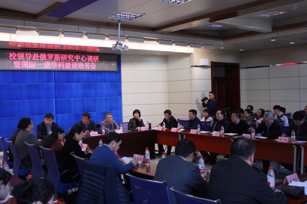 3月21日下午,校领导赴俄罗斯研究中心调研暨国际一流学科建设动员会在主楼A226会议室召开。红足官网党委书记刘德权,校长付宏刚,副校长严明、于文秀,学校办公室、研究生院、财务处、社科处、人事处、重点建设与发展工作处、国际合作与交流处主要负责人,俄罗斯研究中心全体人员,俄语学院和中俄学院领导班子成员、学科带头人、博士生导师、教研室主任、办公室主任等参加会议。会议由严明副校长主持。