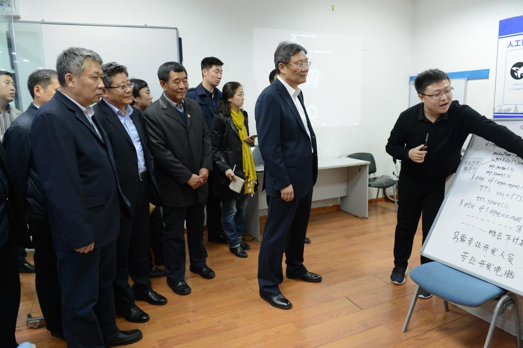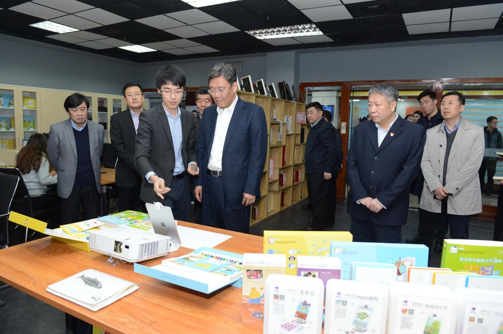 王省长一行走进大学生科技文化创业园,参观了创新创业教育成果展,就创新创业教育开展情况、师生科研成果转化及扶持条件与刘德权书记、付宏刚校长进行交流。随后,王省长参观了园区内越泰科技、中联慧通、恒讯软件、追光人科技、坤厚手作、嘉部猎、桑德工作室等,并不时与创业教育学院院长刘文勇、创业园指导老师、大学生创业者交流互动。在越泰科技参观时,王省长观看了团队研发的儿童教育科技类系列产品演示;在中联慧通参观时,王省长听取了指导教师朱勇带领学生团队的创业历程、所获荣誉,并观看了宣传片,了解团队研发、生产和销售情况;在追光人参观时,王省长观看了由团队自主研发的“大鲸语言”演示;在桑德工作室参观时,王省长听取大学生创业者关于音乐原创、歌曲后期制作及音频处理的介绍。王省长还听取创业教育学院副院长刘玉峰介绍创业基础课程教学改革情况。