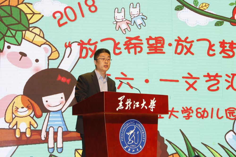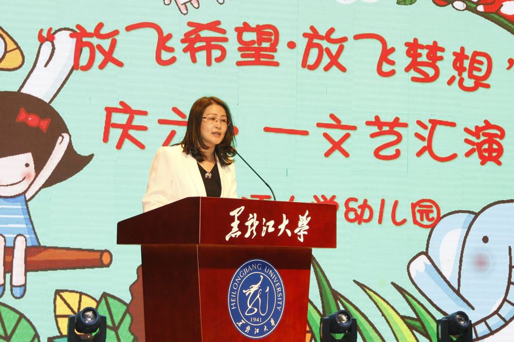 幼儿园园长汪琦对各位领导、来宾、家长朋友表示热烈欢迎和衷心感谢。她说,这场文艺汇演蕴含着幼儿园全体教职员工对孩子们深深的爱,满满的祝福,也是家长们陪伴孩子成长的美好记忆。近年来,幼儿园在学校各级部门、领导的关心、扶持下,优化和丰富了课程的多样性,进一步改善了办园条件,教师团队的综合素质明显提升,幼儿园整体教育质量稳步提高。未来,幼儿园全体教职员工将凭借着对教育事业的执着追求与家长们一起为孩子的将来奠定良好基础,不辜负大家的期望。幼儿园家长代表张晓密对幼儿园全体教职工对孩子们的悉心呵护、培养表示衷心感谢,希望黑大幼儿园越办越好,祝愿所有小朋友都健康、快乐成长。