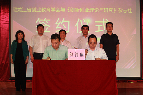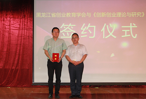 省创业教育学会与《创新创业理论与研究》杂志社举行了合作签约仪式,《创新创业理论与研究》杂志社主编郭满庄为省创业教育学会会长刘文勇颁发常务编委聘书。