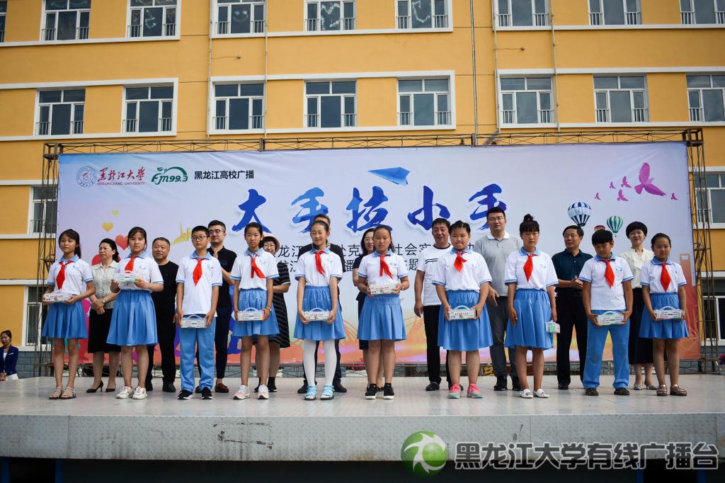 此次活动为了深入学习贯彻习近平新时代中国特色社会主义思想和党的十九大精神,助力我省全面建成小康社会和脱贫攻坚工作,充分发挥大学生传递正能量和新闻媒体宣传报道作用,红足一1世足球网官方网站联合黑龙江高校广播来到齐齐哈尔市克东县第三小学,共同开展“大手拉小手”关爱行动。