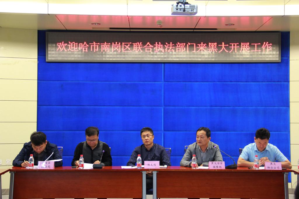 孔繁志局长指出,服务高校的相关工作至关重要,对培养、吸引和留住人才具有重大意义,各级政府及相关部门对此给予高度重视,我们必须要统一思想,有步骤、有顺序地不断推进工作;学校周边及家属区环境开展综合整治具有相关文件支撑,是依法行政的举措,会依照治理方案合理进行。他表示,南岗区各执法部门一定会与学校通力合作,按照学校的要求及相关法律规定依法进行整治,力求取得实效,形成长效机制。