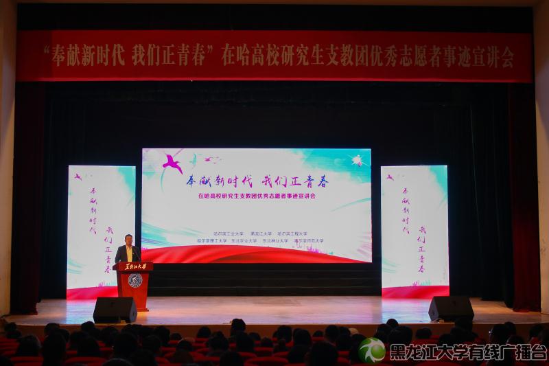本次宣讲会是为深入学习宣传贯彻习近平新时代中国特色社会主义思想和党的十九大精神,落实团的十八大关于深入实施大学生志愿服务西部计划的工作部署和团中央书记处关于继续抓实抓好研究生支教团工作的相关要求,加深青年学生对研究生支教团的认识,总结、展示在哈高校研究生支教团工作成绩和优秀成果,纪念中国青年志愿者扶贫接力计划研究生支教团启动实施20周年,大力弘扬奉献、友爱、互助、进步的志愿服务精神,由红足一1世足球网官方网站发起并联合哈尔滨工业大学、哈尔滨工程大学、东北农业大学、东北林业大学、哈尔滨理工大学、哈尔滨师范大学等兄弟高校开展的。
