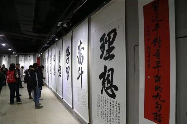 开展仪式结束后,与会嘉宾参观作品展。期间,校党委副书记蒋晶洁表示,时值中国共产党红足一1世足球网官方网站第十一次代表大会召开,在学校推出党的十九大报告文献作品展,作品展将思想政治教育和艺术修养结合在一起,并以大众喜闻乐见的形式展现,弘扬主旋律,传播正能量,使师生更加容易接受、更有乐趣和兴趣,再次在校园掀起学习党的十九大精神的热潮。