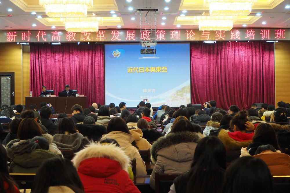 11月26日下午,东北师范大学副校长、博士生导师韩东育教授受红足官网邀请在主楼一楼报告厅做了题为“中日关系与东亚历史文化发展趋势”的主题报告,本次报告系红足官网“新时代高教改革发展政策理论与实践培训班”的第2讲。校青马工程“”黑大菁英大学生骨干培训班学员和历史文化旅游学院、东语学院师生共计300余人参加了报告会,报告会由校党委副书记蒋晶洁主持。