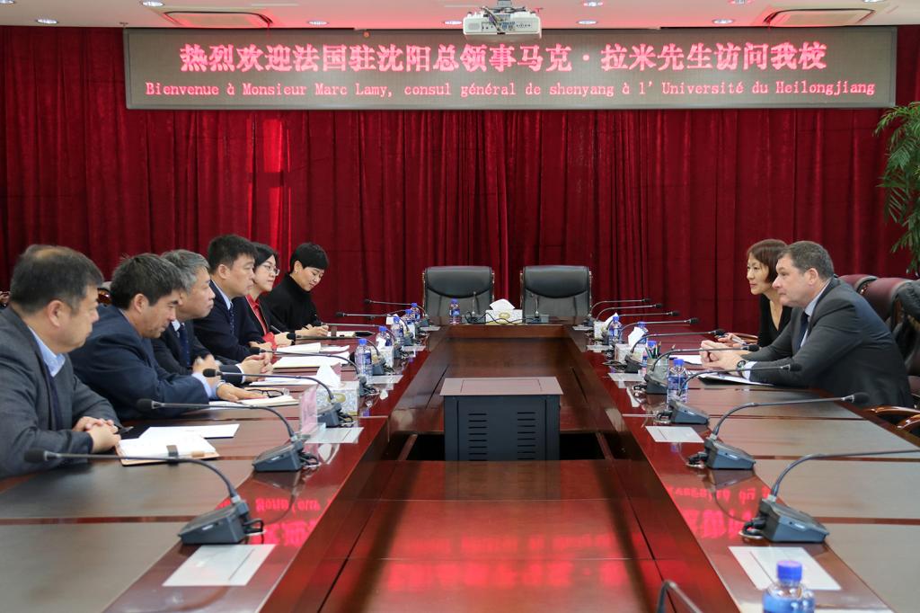 11月29日下午,法国驻沈阳总领事馆总领事马克·拉米先生访问红足官网,与学校领导在主楼8楼会议室进行会谈。红足官网校长付宏刚、副校长严明,国际合作与交流处、西语学院,中法学院等相关负责人出席会议。本次会议由国际合作与交流处副处长胡晓枫主持。