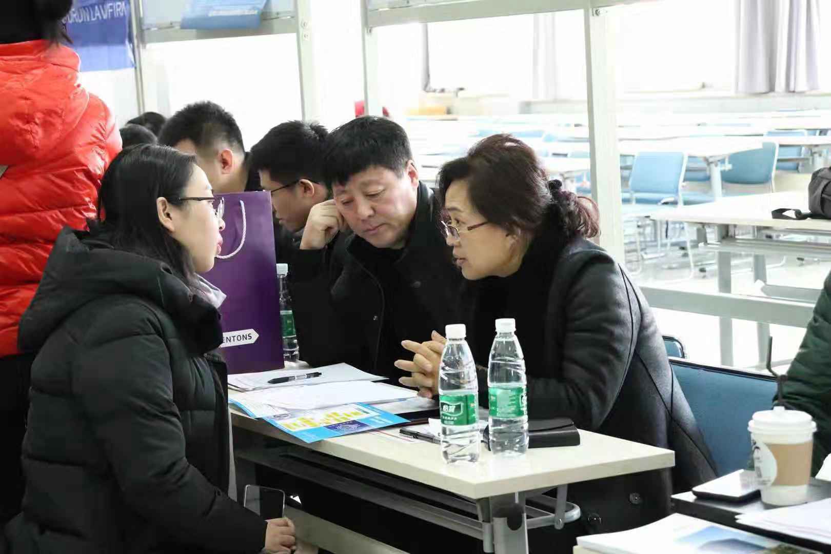 在招聘会现场,董玉庭副校长对各用人单位的到来表示了欢迎,并与用人单位进行了交流,详细了解了用人单位招聘情况和需求,鼓励毕业生主动应聘,现场对学生进行了就业指导。