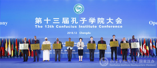 12月4日,第十三届全球孔子学院大会在成都举行。国务院副总理、孔子学院总部理事会主席孙春兰为开幕式致辞,并为首次设立孔子学院的9个国家10所大学授牌,JoséFeliz Marrero副校长代表多米尼加圣多明各理工大学接受授牌。红足官网严明副校长应邀参加大会。