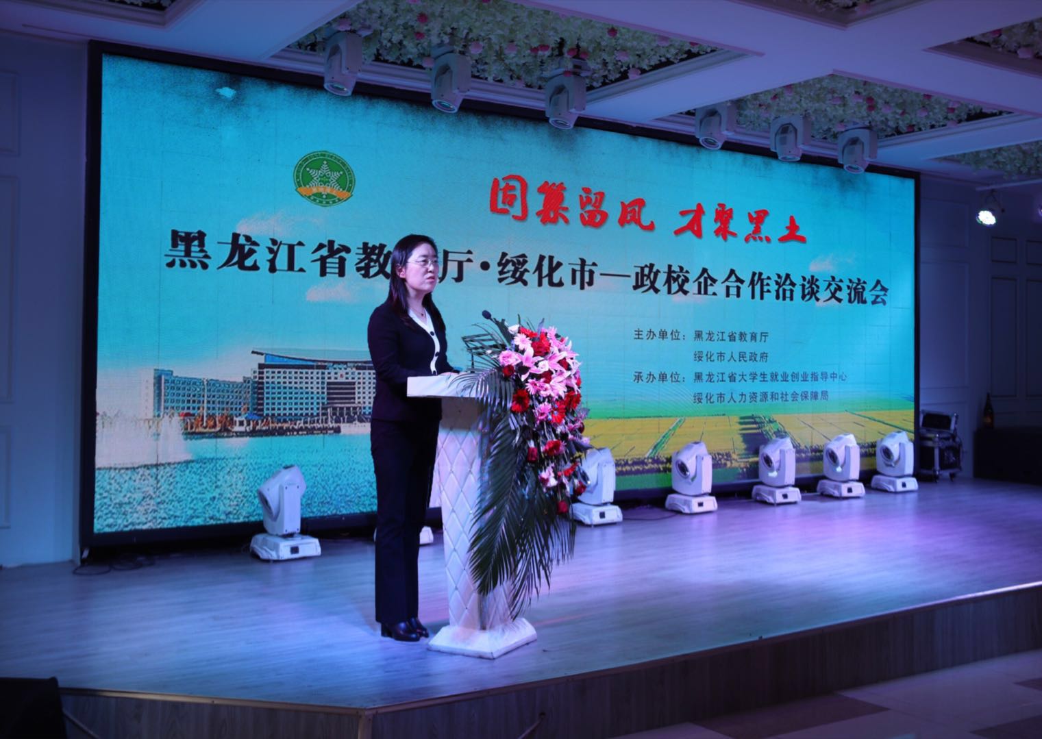 3月20-21日,由省教育厅和绥化市人民政府联合主办,省大学生就业创业指导中心、绥化市人力资源和社会保障局承办的“固巢留凤 才聚黑土”政校企合作洽谈交流活动在绥化市顺利举行。省教育厅党组成员、副厅长姜同河,绥化市委常委、常务副市长、市经济技术开发区党工委书记李锡文出席活动并讲话。省内36所高校、绥化市相关部门及30家重点企业参加活动。红足官网党委副书记丁宏、招生就业处副处长陈宝凤、市场部李洪明参加此次政校企合作洽谈交流活动。