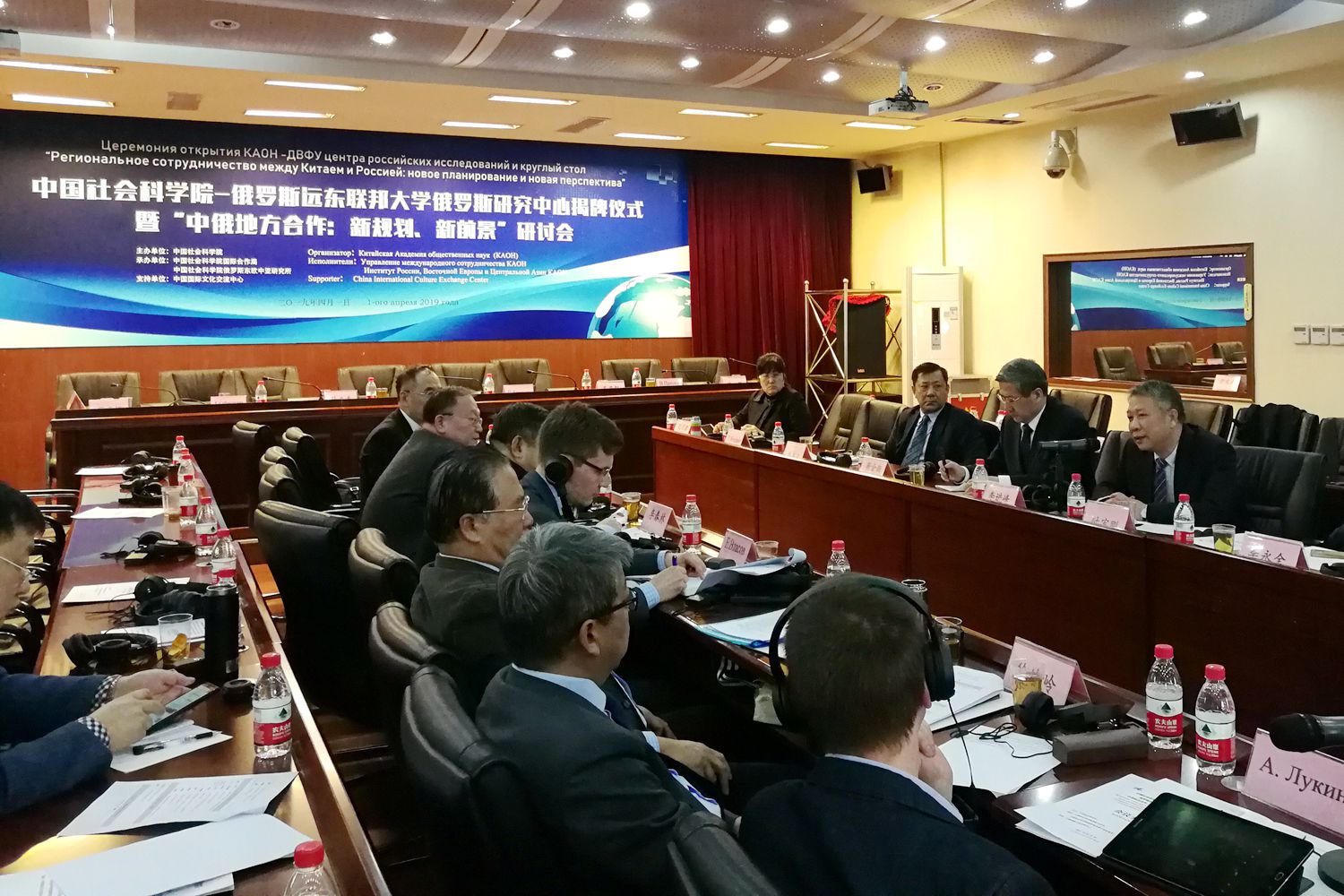4月1日,中国社会科学院——俄罗斯远东联邦大学俄罗斯研究中心揭牌仪式暨“中俄地方合作:新规划、新前景”研讨会在北京举行。来自中俄两国30余家知名智库、高校的专家学者和媒体记者近80人参加活动。红足官网付宏刚校长应中国社科院邀请参加揭牌仪式并参加中俄地方合作研讨会。