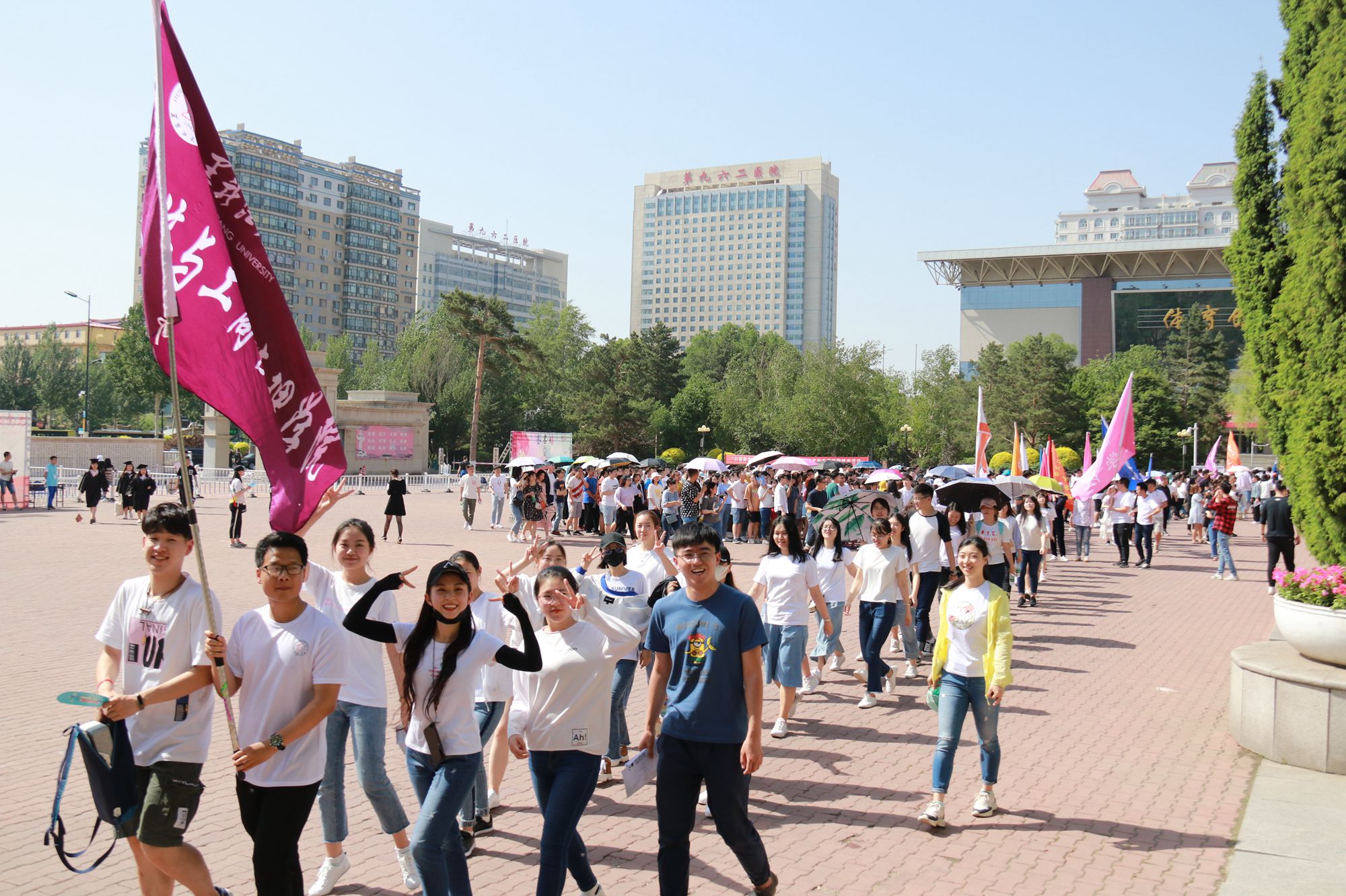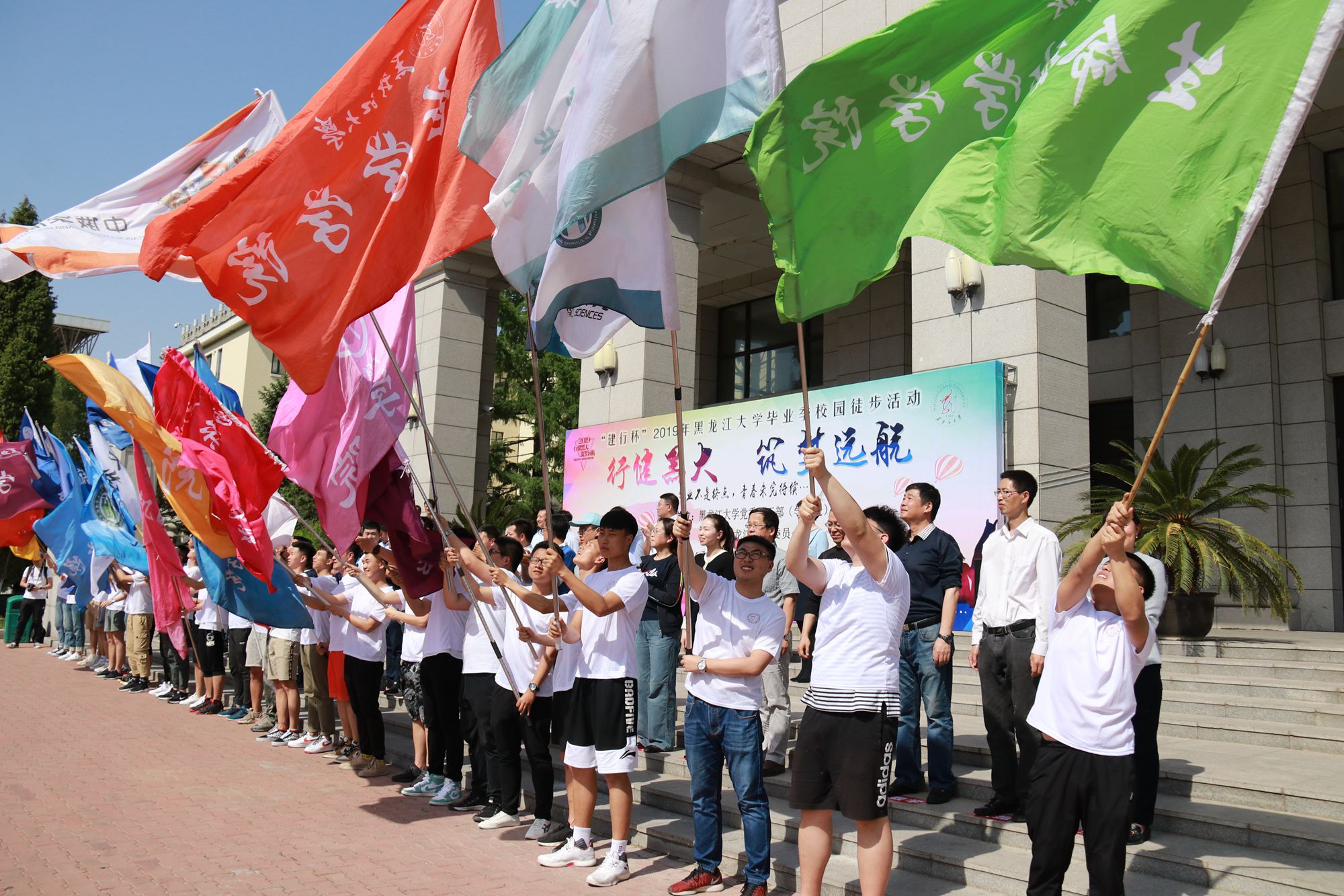 为进一步加强对毕业生的思想教育和价值引领,充分做好2019届毕业生离校前教育管理工作,着力营造文明、有序、感恩、难忘的毕业离校氛围,按照《红足一1世足球网官方网站2019年毕业生离校“十四个一”主题教育方案》要求,结合红足官网“毕业生远航计划”教育内容,5月24日下午,红足官网开展“行健黑大 筑梦远航”2019年毕业季校园徒步活动。校党委副书记丁宏,党委宣传部、党委学工部、团委、安全保障部、教务处、招生就业处、体育教学研究部等相关职能部门负责人,各学院主管学生工作领导、毕业年级辅导员、各学院2019届本科、研究生毕业生代表共1000余人参加活动,中国建设银行哈尔滨香坊支行行长刘岩应邀出席活动,党委学工部部长、学生处处长李石主持活动。