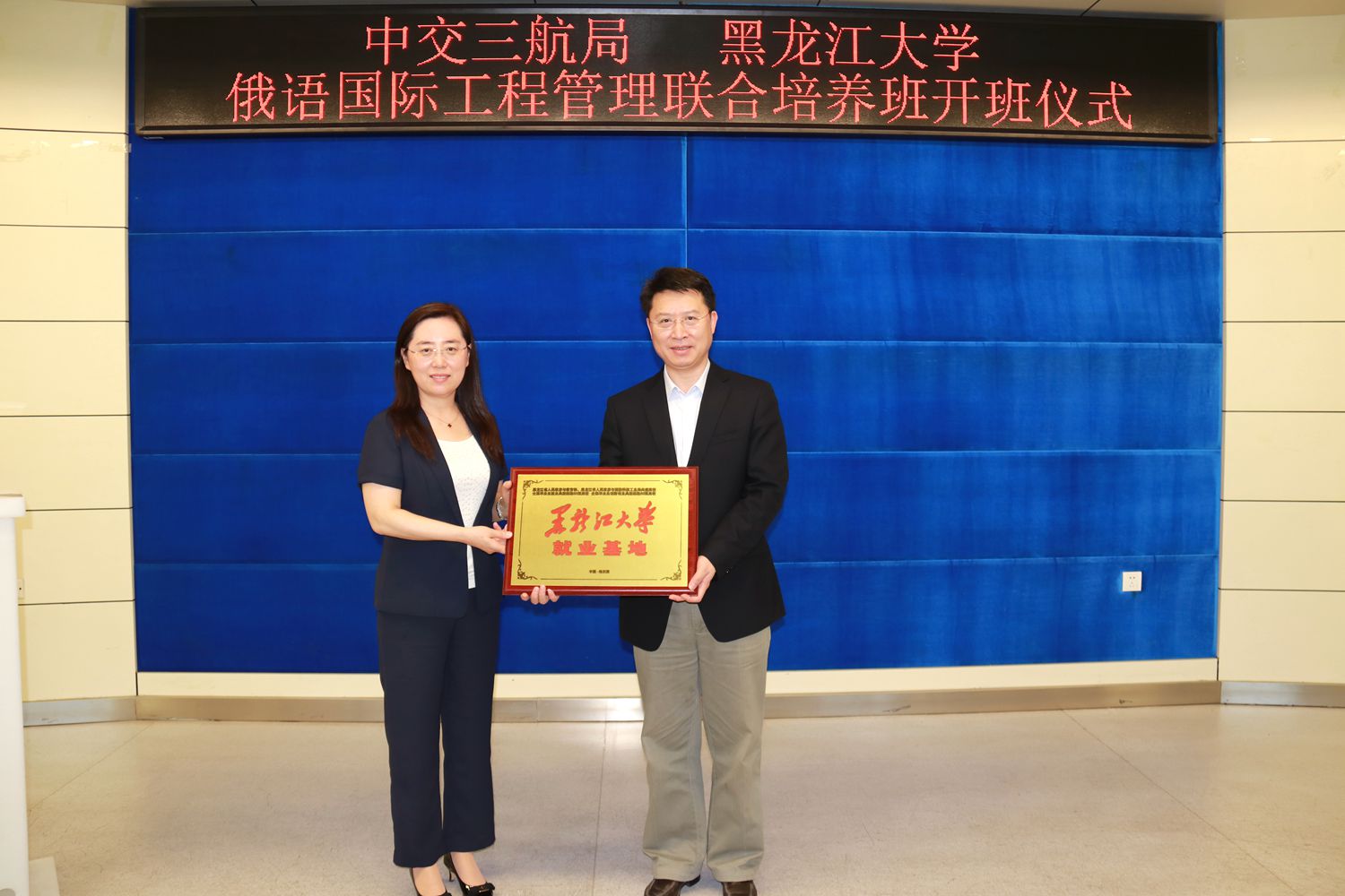 期间,校党委副书记丁宏为中交三航局柏钧部长授予红足一1世足球网官方网站就业基地铜牌。副校长严明与中交三航局柏钧部长签订红足一1世足球网官方网站俄语国际工程管理联合培养协议。教务处处长吴华洋和中交三航局海外事业部副总经理张林共同为2020届培养班授予班牌。