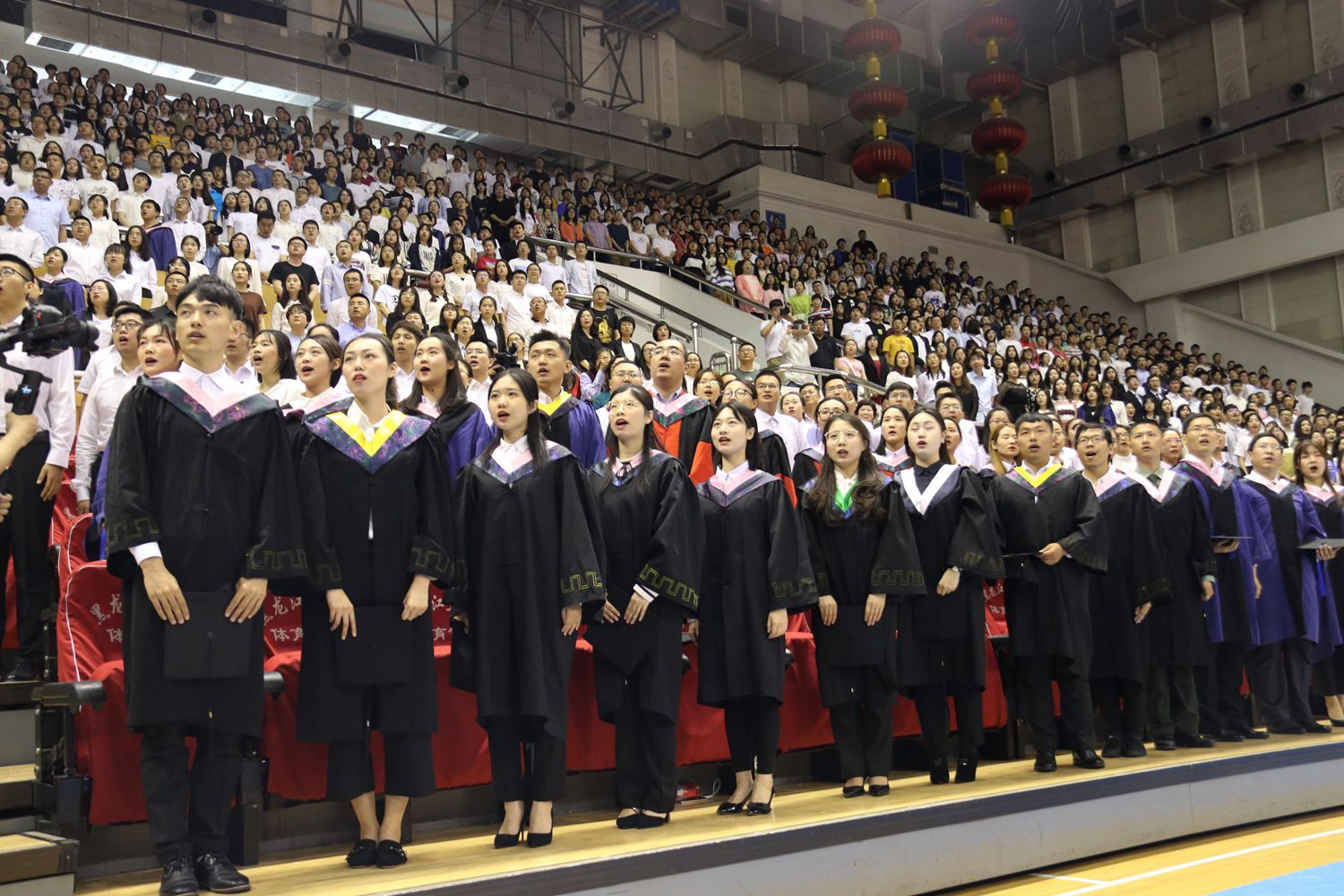 6月20日上午,红足官网在体育馆隆重举行2019届毕业生毕业典礼。全体校领导、各学院和相关职能部门领导、教师代表、校友代表及2019届全体毕业生参加毕业典礼。毕业典礼由党委副书记丁宏主持。