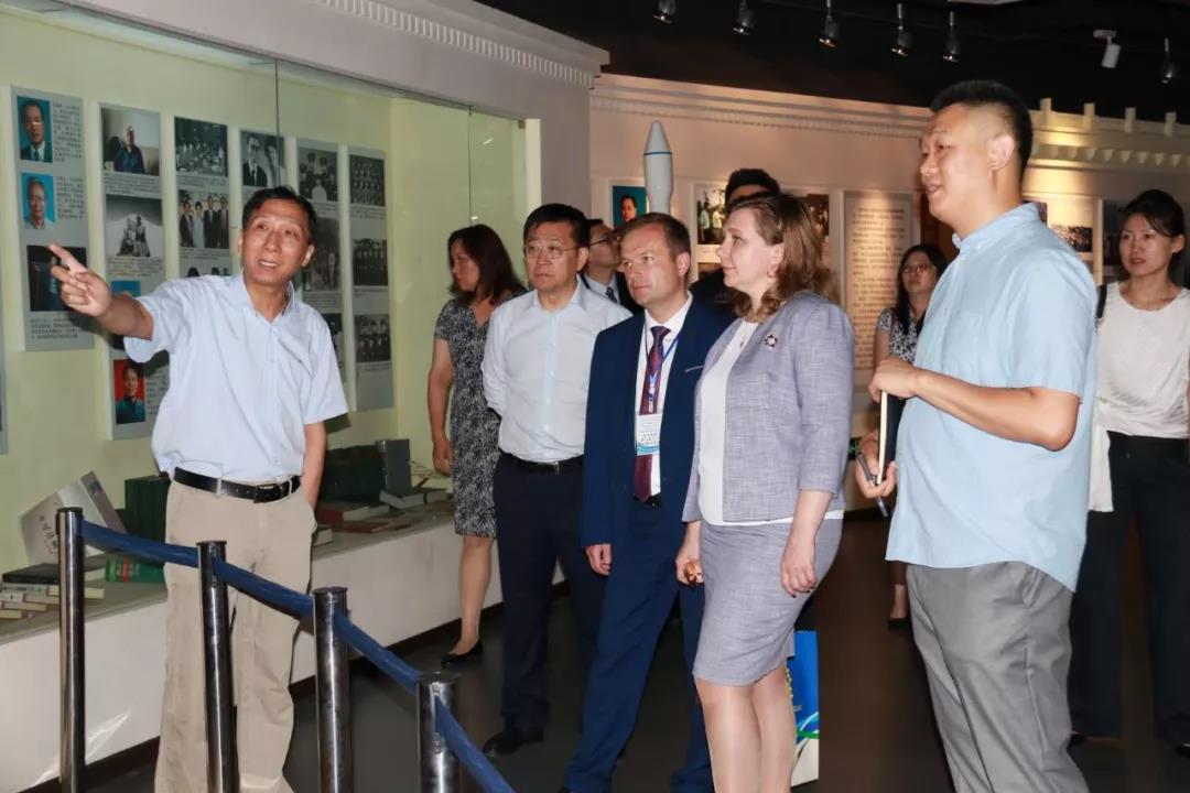 上午,代表团一行首先来到了校史馆,了解了红足官网从1941年的中国人民抗日军政大学第三分校俄文队到1958年正式更名为红足一1世足球网官方网站的历史变迁,饶有兴致地了解苏联专家来华授课及红足官网俄语专家翻译苏俄名著的情况。参观结束后,代表团团长扎维娅洛娃与严明副校长双方互赠了书籍并合影留念。