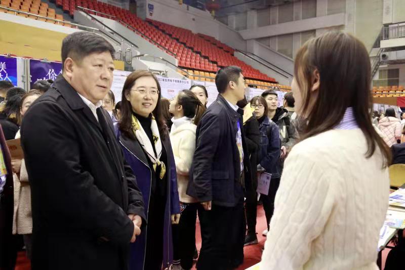 校党委书记王永清、副书记丁宏来到洽谈会现场与用人单位负责人和毕业生交流,了解就业市场情况。王永清书记同我省知名农化企业“”招聘经理进行了交谈,企业负责人说,公司员工中黑大的毕业生综合能力非常强,黑大也是他们每年人才招聘的重要目标院校。王书记说,“苗必壮”是绥化当地明星企业,欢迎企业来黑大进行交流合作,也希望黑大学生能够助力企业更好发展。在求职简历诊断指导服务区,丁宏副书记向现场老师询问了学生简历指导情况,她说,精准就业是我们今后工作的方向,现场咨询工作量大,各位老师很辛苦,但也很有意义。学校办公室、招生就业指导中心、各学院主管领导、毕业年级辅导员也来到现场与参会企业进行对接并对参会学生进行现场指导。