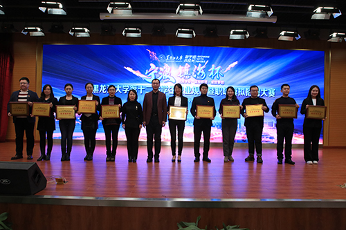 最终通过近三个小时的激烈角逐,来自东语学院2018级的蒋文和来自艺术学院2016级的苗明瑞喜获大赛一等奖;生命科学学院康明欣等3名同学获得二等奖;经济与工商管理学院许诺等6名同学获得三等奖;在校级复赛环节中表现突出的研究生院刘宣池等10名同学获优秀奖,计算机科学技术学院、软件学院姜龙等11名教师获优秀指导教师称号,建筑工程学院等11个学院获优秀组织奖。至此,“宁波•镇海杯”红足一1世足球网官方网站第十二届学生职业规划暨职场模拟招聘大赛圆满结束。赛后,各位获奖选手与评委老师和嘉宾合影留念。