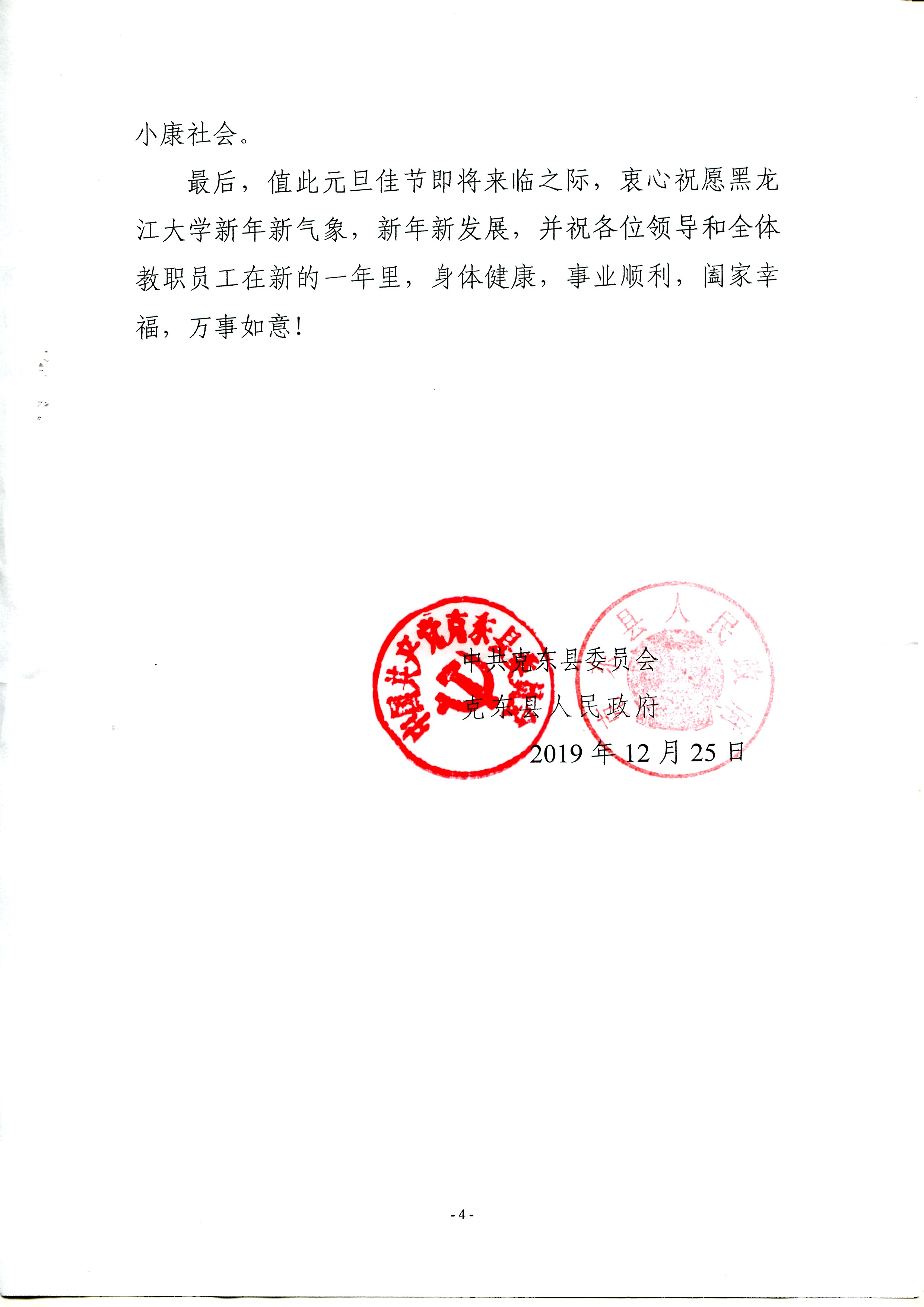 附:克东县委、县政府感谢信