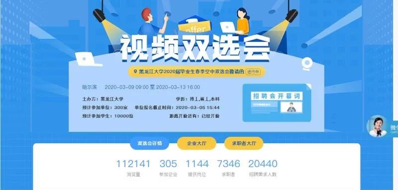 本场“空中双选会”从2月份启动邀请,历时一个月的筹备,从报名的企业里筛选审批305家用人单位参会,招聘职位20440个。截至3月9日下午15:00,空中双选会平台访问人次已破11万,简历投递17976份,招聘会在线参加学生7486人,其中财务、管理培训生、人力专员、电气工程师等岗位投递简历最多,受到学生青睐。疫情难掩学生求职热情,其中中国建筑第四工程局、广东大雅智能厨电、浙江我武生物科技有限公司、黑龙江优普电子商务有限公司、宁波金田铜业等用人单位线上面试火爆,网络排队面试学生络绎不绝。