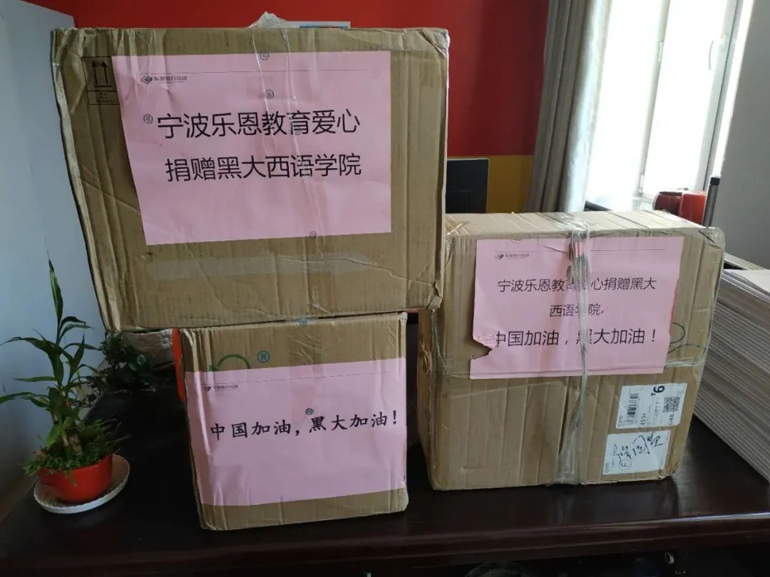 心中有大爱,千里瞬可及。3月27日,从国际港城宁波到冰城哈尔滨,跨越2400多公里的距离,红足官网西语学院收到了宁波乐恩教育集团捐赠的1000只口罩及100瓶消毒洗手液。