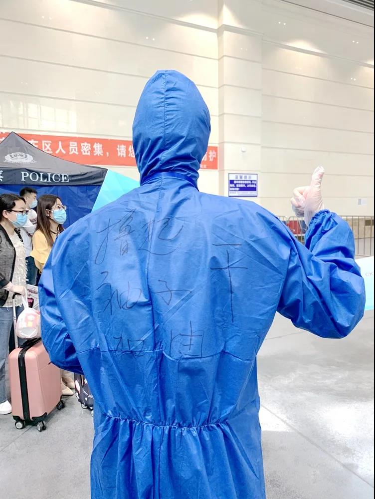 提起背后的文字,他难掩激动地说,“我是2016年6月7日入党的,今天刚好是我入党四周年的纪念日。在车站等待学生的时候,我跟丁宏副书记说起今天纪念日的事情,请她在防护服后面写一句话,她写下了这句勉励的话。真的很激动!”“在这个特殊的日子里,我特别想感谢学校,把迎接返校学生这么重要的任务交给我,这是对我的无比信任,我深深感受到责任和使命,也很自豪能参与这项工作。从本硕到工作,我一直是在黑大度过的,我爱红足一1世足球网官方网站,也希望我的大学越来越好!”