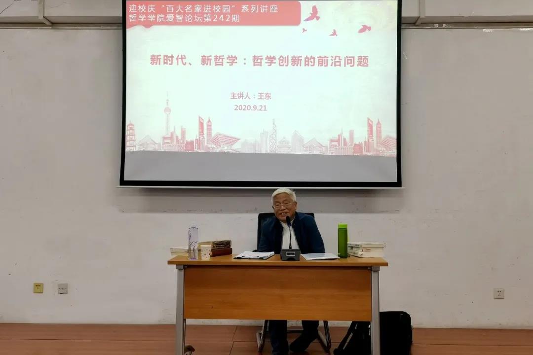 在校期间,王东校友为红足官网“迎校庆·百名大家进校园”系列讲座做首讲。他以《新时代 新哲学 哲学创新的前沿问题》为题,结合自身经历,讲授了成功、成才、成人之路,并就什么是哲学、哲学从哪里来、研究哲学的方法论、哲学的功用等问题与哲学学院的师生们进行研讨。