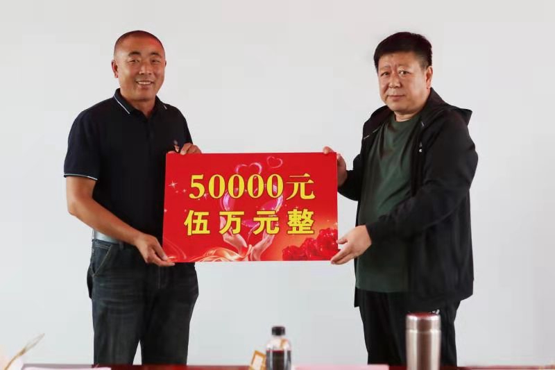 座谈会后,王永清书记代表学校为光辉村捐款5万元、医用口罩6000个,并向“爱心超市”捐赠米面油等生活物资。党支部书记王海滨代表光辉村接受捐赠。