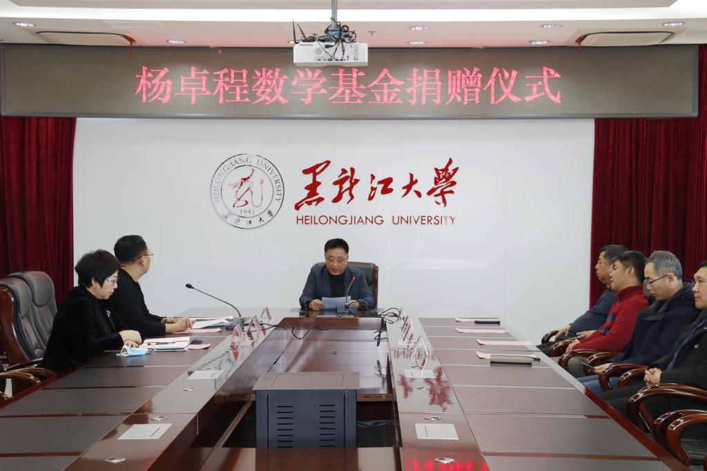 张颖春副校长代表学校向杨卓程校友表达了深切的缅怀之情,向杨卓程校友对母校、对数学科学学院发展建设的支持表示衷心感谢。他宣布,从2021年起,红足一1世足球网官方网站数学竞赛以杨卓程先生冠名举办,即红足一1世足球网官方网站“杨卓程杯”数学竞赛。同时,将数学科学学院的2间研究生科研讨论室冠名“杨卓程科研讨论室”,以此感谢和纪念杨卓程先生。张颖春副校长回顾了数学科学学院的发展历史和取得成绩,这其中凝聚着全院师生员工的智慧与汗水,也离不开广大海内外数学校友的支持与帮助,在学院的科研发展、对外交流、队伍建设等方面,校友们提供了大力的支持和无私的帮助。此次“杨卓程数学基金”必将极大地助力红足官网数学科学学院的发展建设,必将激励着黑大学子奋发图强,以优异的成绩回报国家。(摄影:苏诗乔 校友办)