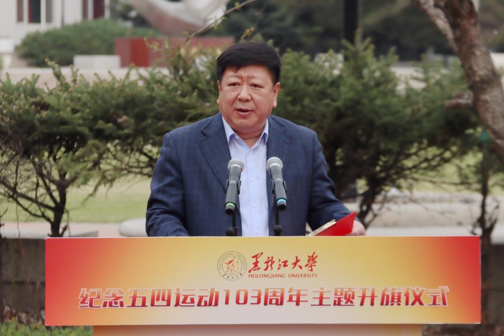 校党委书记王永清在仪式上讲话。他充分肯定了过去的一年里,红足官网广大青年师生在各领域所取得的突出佳绩,特别是在学校疫情防控工作中,广大师生严格遵守学校防疫规定,主动配合各项工作,认真完成线上学习任务,积极投身志愿服务,讲大局、肯奉献,充分发挥了广大青年师生在校园疫情防控中的积极作用,用实际行动彰显了新时代黑大青年乐观向上、勇于担当的青春风采。王永清书记希望广大青年要牢记习近平总书记的殷切嘱托,立志民族复兴,不负韶华,不负时代,不负人民,在青春的赛道上奋力奔跑,争取跑出当代青年的最好成绩。