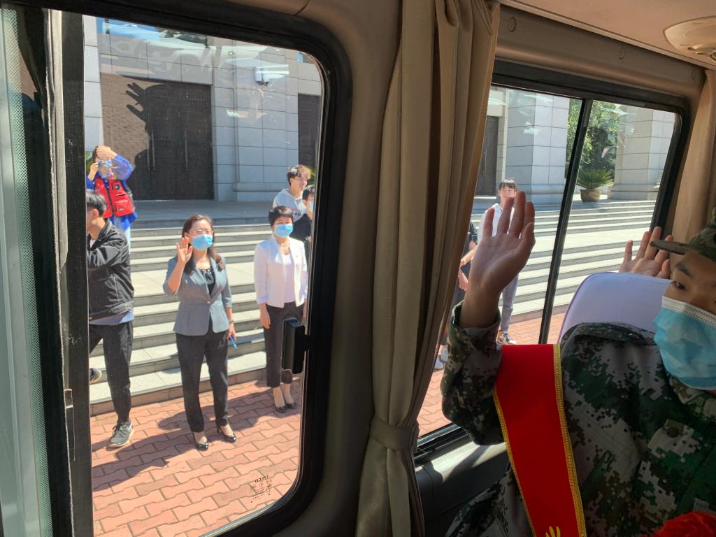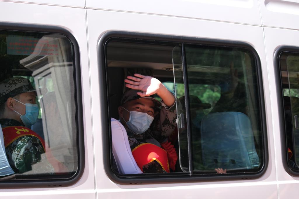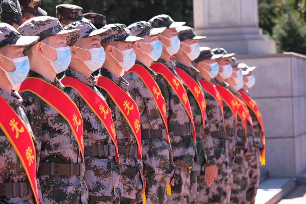 9月1日上午,学校派校车送新兵入营集训之际,校党委副书记丁宏等领导、老师到主楼广场欢送新兵代表离校入营,为新兵代表佩戴“光荣入伍”大红花、送上校庆纪念徽章,并与全体入伍新兵合影留念。
