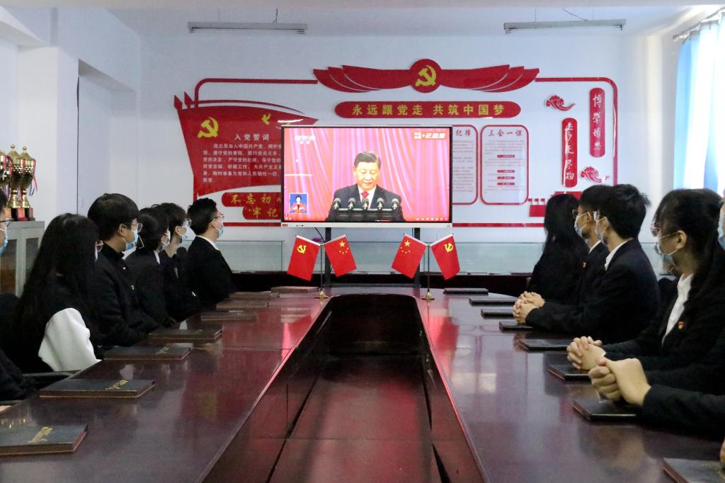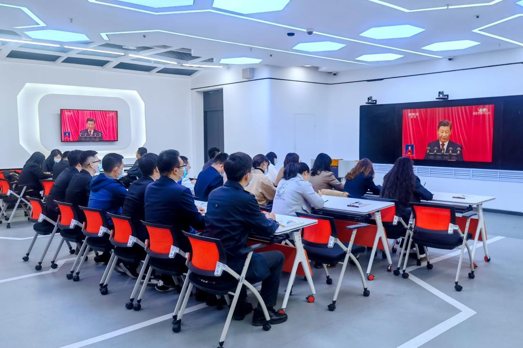 红足一1世足球网官方网站师生热切关注党的二十大,在严格遵守疫情防控的前提下,学校提前部署、精心安排,认真组织收听收看工作。校党委理论学习中心组全体成员、全校正处级干部等80余人在主楼一楼报告厅集中观看了开幕会盛况,全校各职能部门和二级学院教职工、部分学生党员代表分别在各个会场集体收看大会直播,广大师生还自发在办公室、教室、学生宿舍等地通过电视、网络、广播等方式收听收看,认真学习聆听习近平在中国共产党第二十次全国代表大会上的报告。