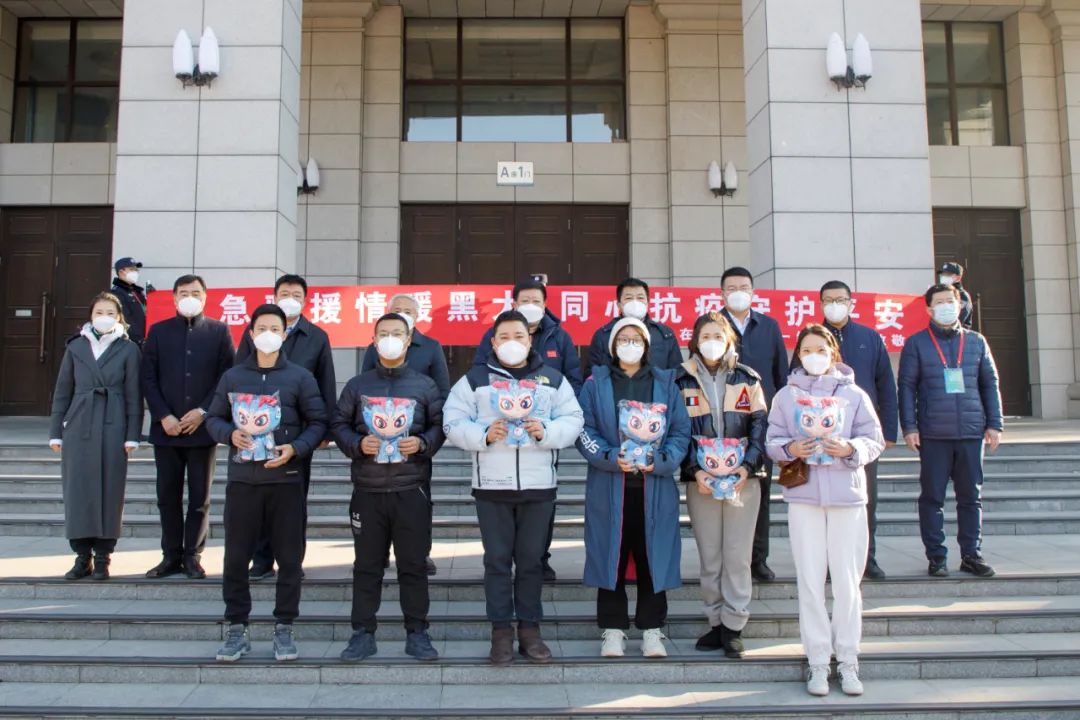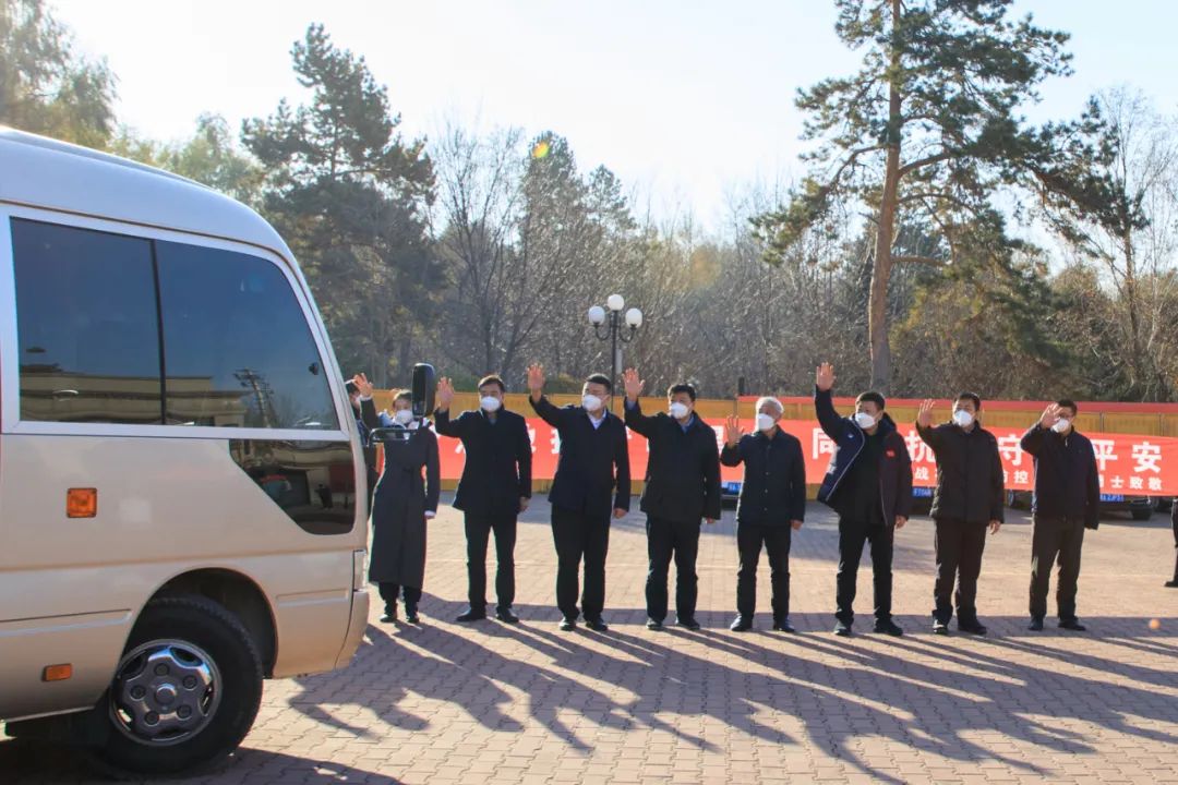 11月10日上午,学校主楼广场、丽泽园门前广场上鲜红的“紧急驰援情暖黑大 同心抗疫守护平安——向奋战在疫情防控一线的勇士致敬”条幅格外醒目。在校园疫情得到有效控制,“战疫”取得阶段性胜利的今天,市公安局公安干警、市国资委国资国企干部职工圆满完成支援任务,即将离开学校。学校举行简单又暖心的欢送仪式,校党委书记王永清,党委副书记丁宏,省纪委监委驻校纪检监察组组长梁东辉,副校长严明、李卓,部分驻校干部出席仪式。
