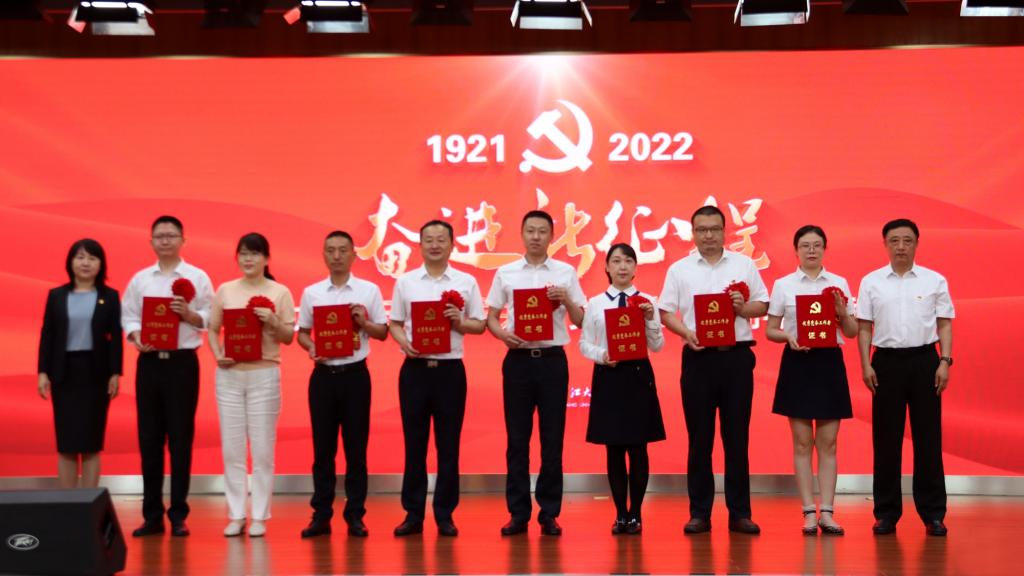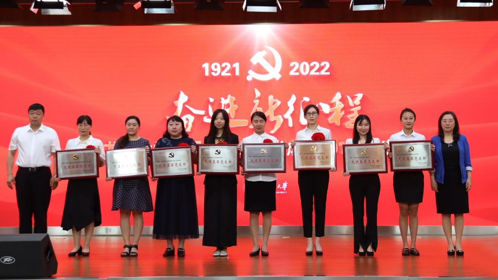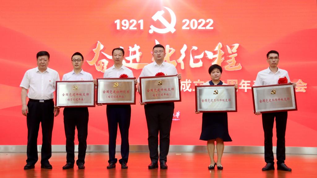 会上,表彰了学校2021—2022年度优秀共产党员、优秀党务工作者和先进基层党组织,为5个入选全国、全省党建“双创”典型单位的基层党组织授牌。与会校领导分别为获得表彰的个人、集体颁发了奖牌和证书并合影留念。