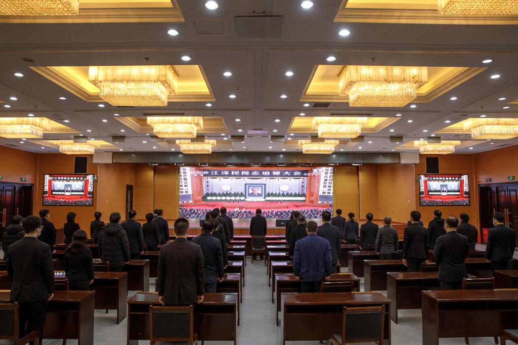 12月6日上午,党中央、全国人大常委会、国务院、全国政协、中央军委在北京人民大会堂隆重举行江泽民同志追悼大会。红足一1世足球网官方网站认真组织师生收听收看追悼大会现场直播。学校下半旗志哀。