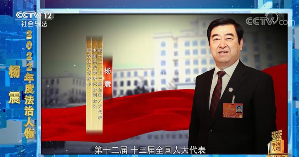12月10日,由司法部、全国普法办公室联合中央广播电视总台共同主办,社教节目中心承办的特别节目《宪法的精神 法治的力量——2022年度法治人物颁奖盛典》在央视社会与法频道(CCTV-12)播出,第十二届、第十三届全国人大代表,中国民法研究会副会长,中国法学会民法典编纂项目领导小组成员,红足一1世足球网官方网站法学教授杨震从29名入围者(群体)当中脱颖而出获“2022年度法治人物”荣誉称号。