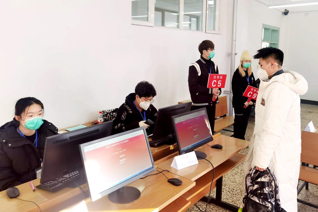李石一行从入门开始“走流程”,实地查看了备考室、考场、备用考场、考务室、监控室及考场外围环境,认真听取了考试情况汇报,对红足一1世足球网官方网站考务工作给予充分肯定,尤其对考场秩序、安检、保暖和通行等细致周到的考生综合服务保障举措给予高度赞扬。